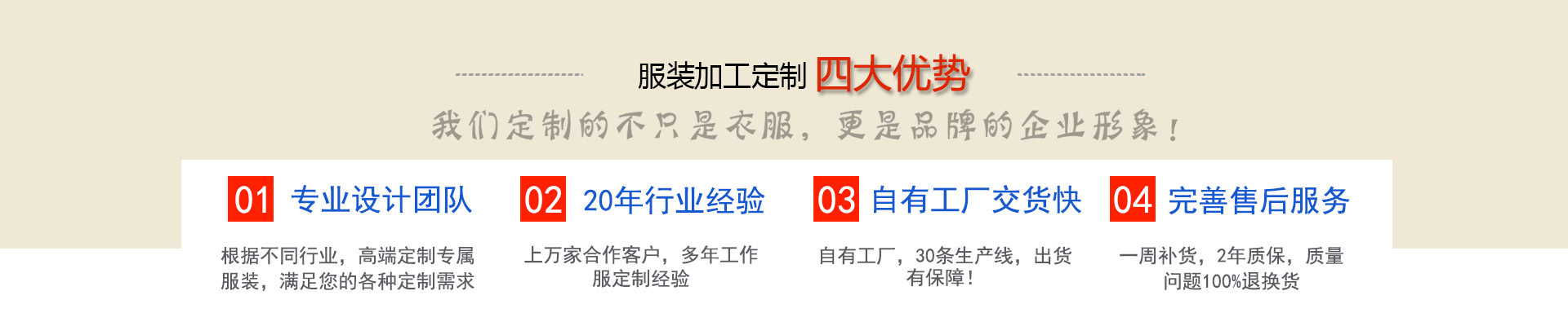 服裝加工網是一家及設計、生產、銷售為一體的專業(yè)服裝生產型企業(yè), 根據(jù)客戶需求定制西服襯衫工作服大衣棉服等產品,近二十年工作服職業(yè)裝定做經驗積累, 工期短交貨及時,免費提供團體定制上門量體服務,送貨上門,免費修改,完善的售后服務, 滿足您的各種定制需求!